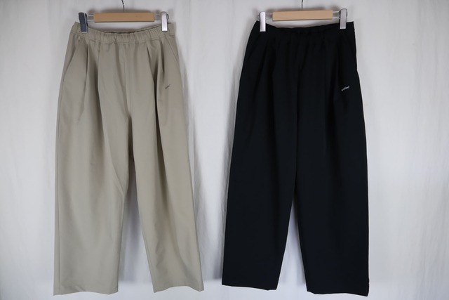 2026年春は、より春夏に適した素材にアップデートすることになりました トラベルジャケットと同素材、セットアップ着用を前提に デザインされたパンツです。 ヒップ周りやワタリ幅にユトリをもたせ、 着用した時に適度なルーズ感が出るようなシルエットです。 スラックスの上品さも持ち合わせ、シワにもなりにくい、 ON/OFFどちらにも使える万能パンツです。 素材:ポリエステル100% 原産国:日本 注意事項 生地の特性上、摩擦による白化が見られる場合があります。連続の使用はなるべくお避けいただき、できるだけ休み休みご着用ください。また、濡れた状態が続くのも生地の痛みや色の変化の原因となりますのでご注意ください。お洗濯の際は、全体を裏返して洗濯ネットに入れ、なるべく単独洗いをすることで摩擦を避けられます。 サイズ表(cm) 3 4 5 6 ウエスト 73 77 81 85 股上 27 27.5 28 28.5 股下 69 70 71 72 渡り巾 31 33 34 35.5 裾巾 17 18 19 20 男性モデル167cm 6着用