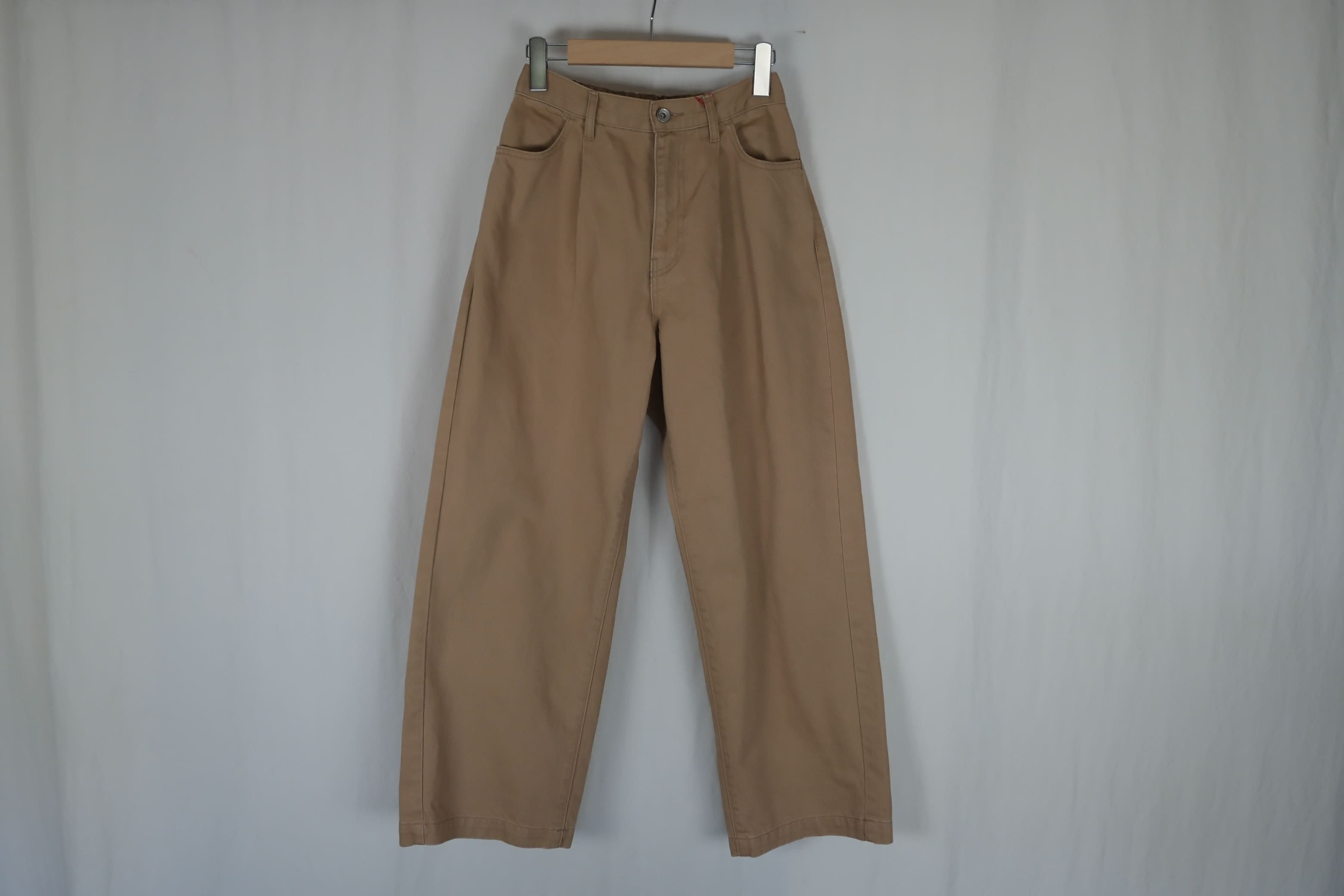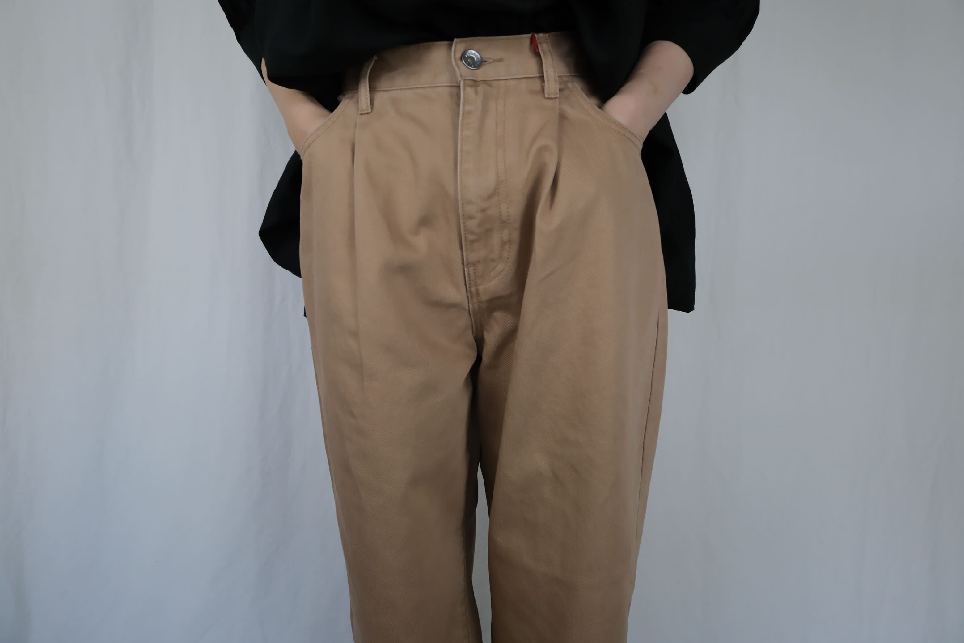 ・コットン100%のカツラギを使用したタック入りのパンツ