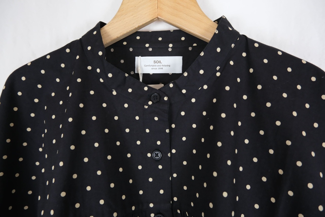 SOIL 40s POPLIN DOT PRINT BANDED COLLAR SHIRT