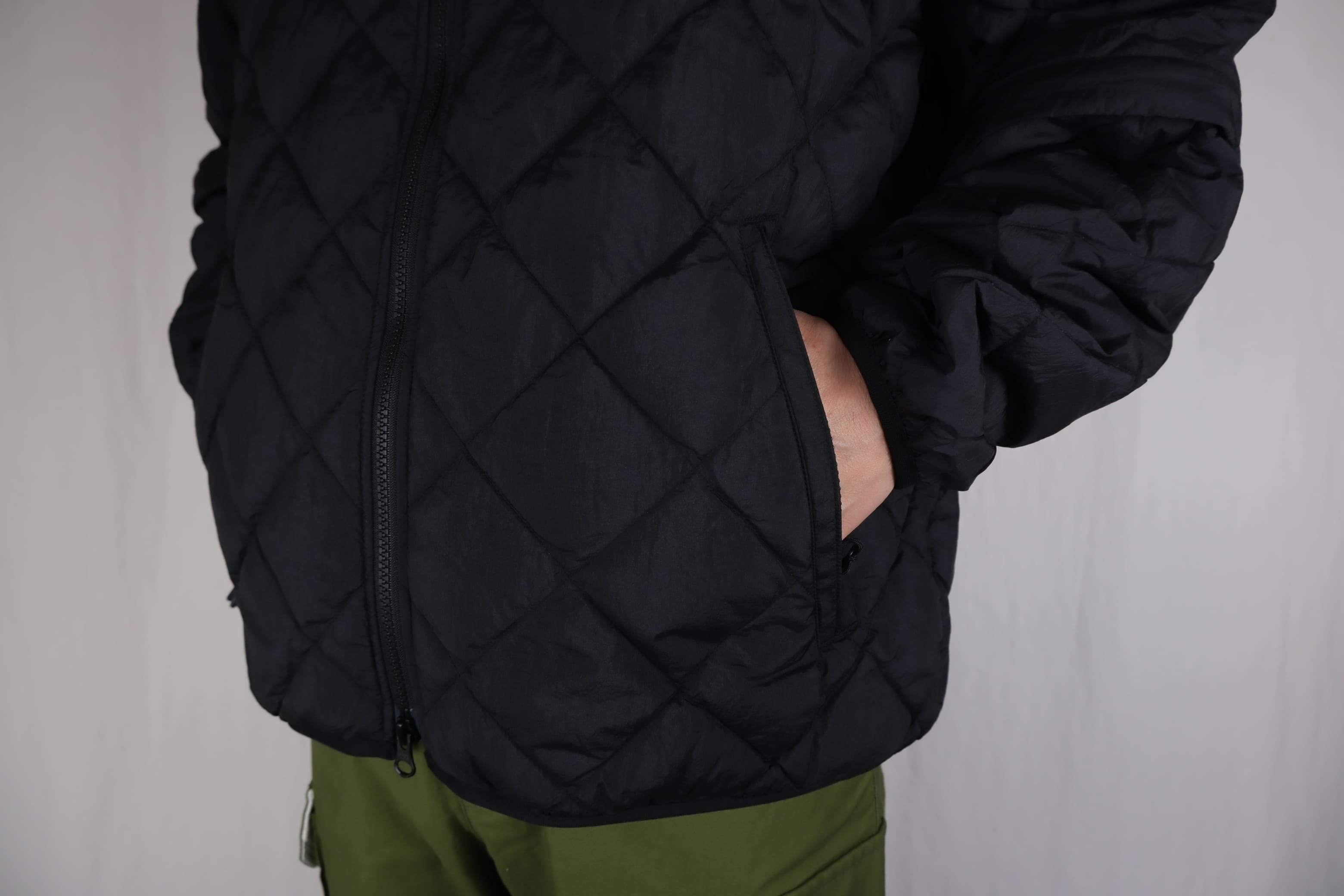 素材 表地:ナイロン100% 裏地:ナイロン100% 詰物:ダウン90% フェザー10% パイピング部分:ポリエステル90% ポリウレタン10%