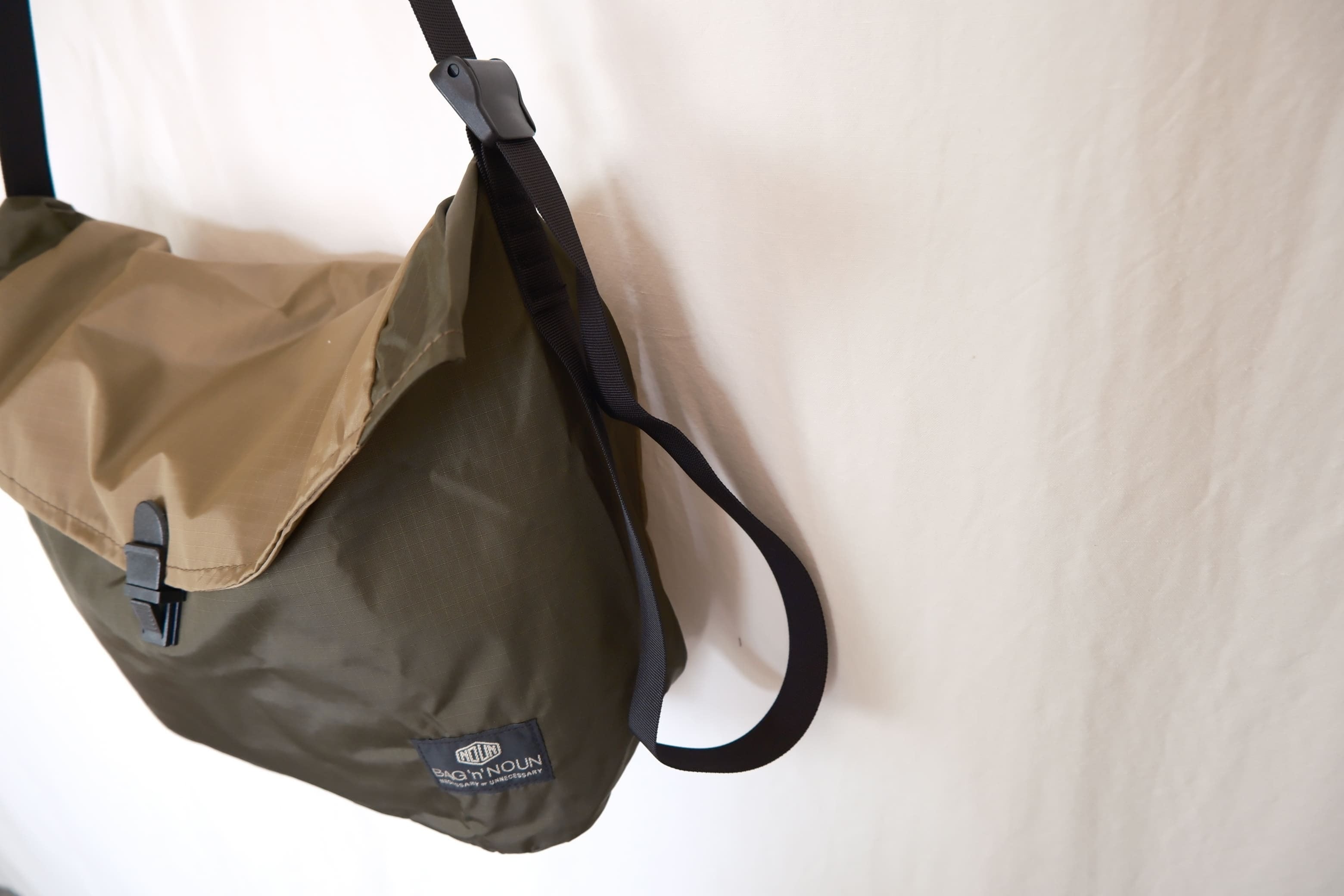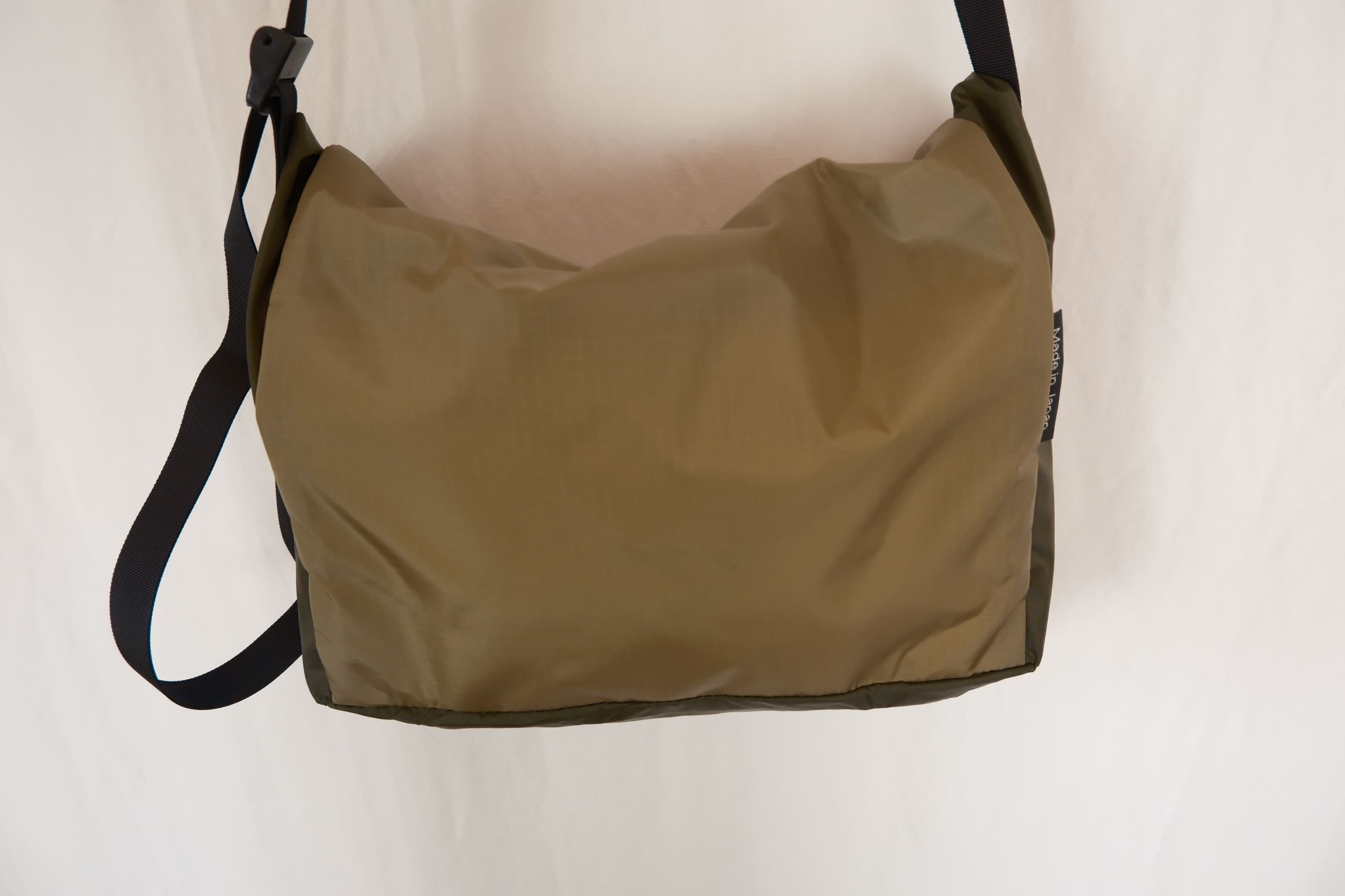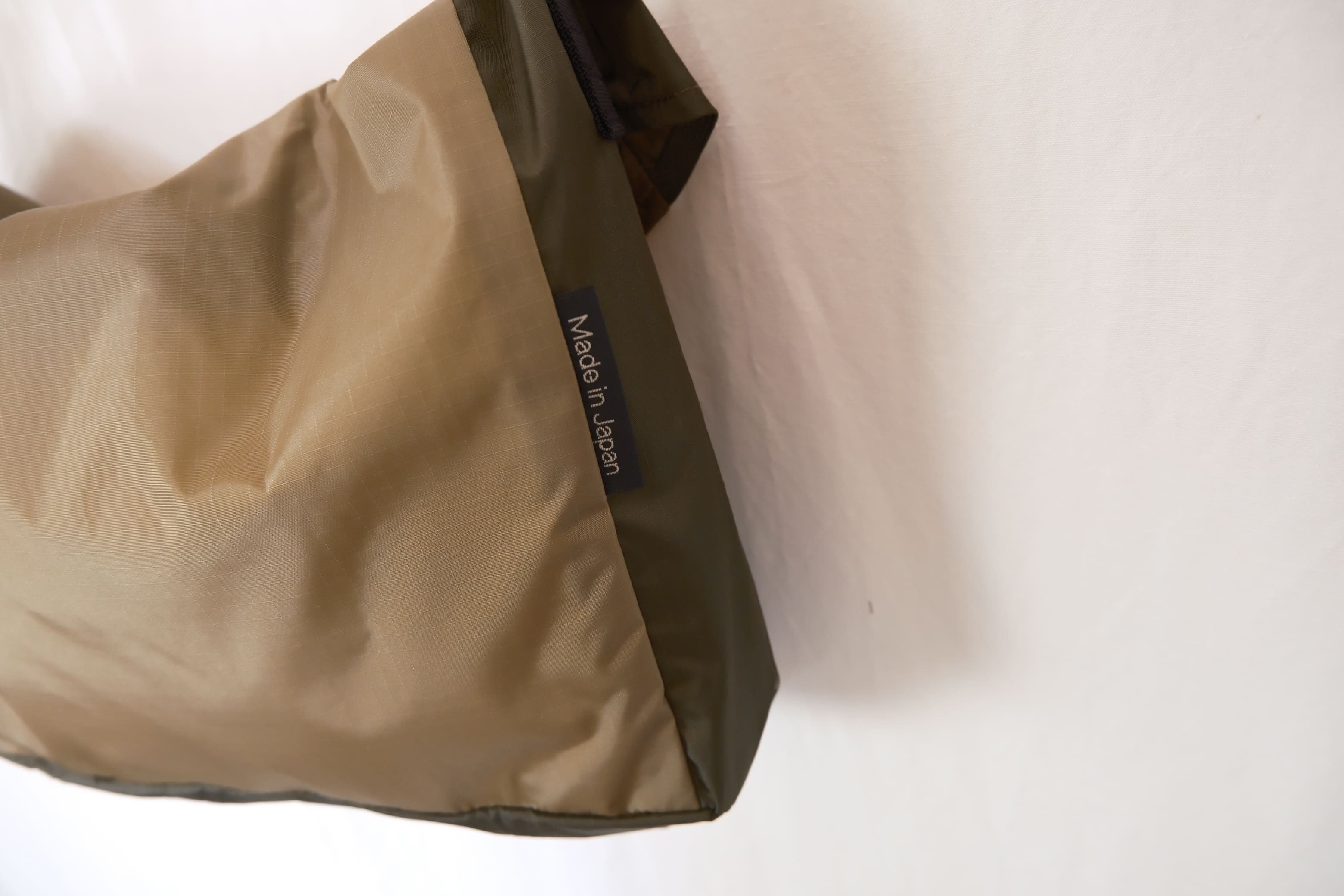 生地は軽量で丈夫なリップストップナイロンを使用し、軽い使い心地でアウトドアや旅行でも重宝します。