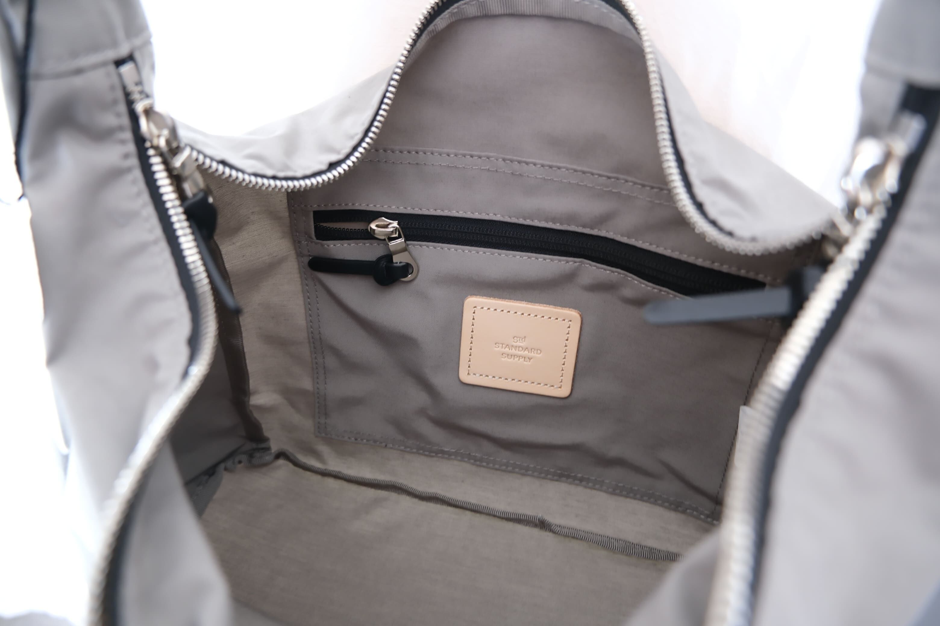 メインスペース背面にはファスナーポケットを付けています。